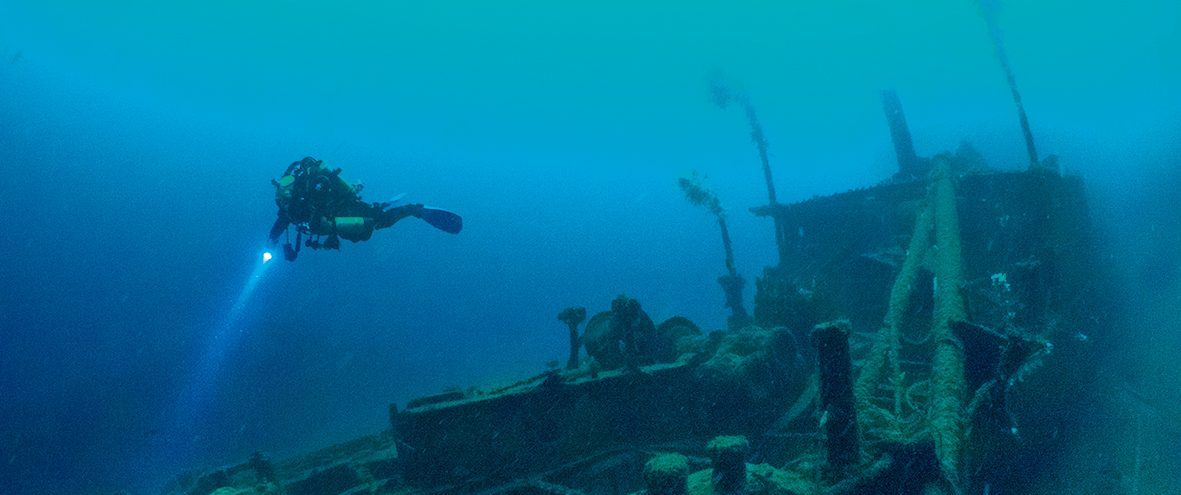 Sebbene Scapa Flow sia stato utilizzato come porto sin dai tempi dei Vichinghi (il nome deriva dall’antico norvegese Skalpeidfloi, “baia dal lungo istmo”), un solo evento gli ha assicurato una fama imperitura tra i subacquei. Dopo la prima guerra mondiale, i resti della flotta della marina tedesca furono riuniti a Scapa Flow dagli alleati. La flotta, che comprendeva 79 navi, fu imprigionata qui per oltre un anno. Il 21 giugno 1919 l’ammiraglio Von Reuter, il comandante tedesco, interpretando erroneamente i titoli di un giornale, credette che le ostilità stessero per ricominciare e ordinò alle navi di autoaffondarsi piuttosto che cadere nelle mani delle forze alleate.